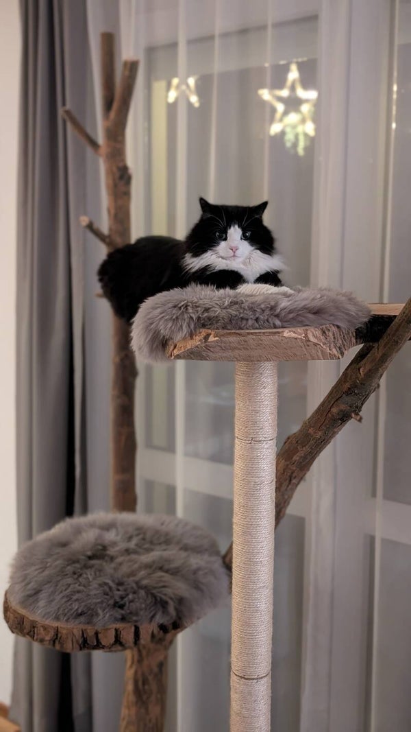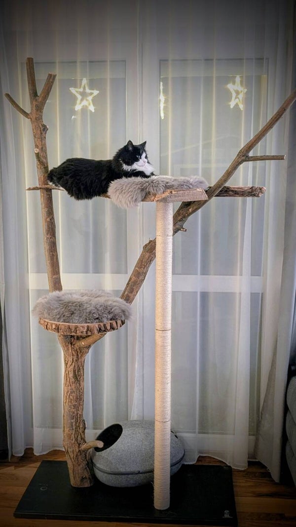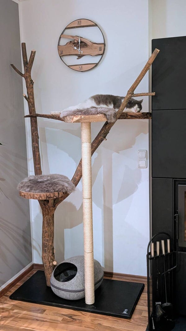 Unser "Kletterkönig“ vereint natürliche Eleganz, Stabilität und großzügigen Komfort für anspruchsvolle Katzen – und für Menschen mit Sinn für zeitloses Design.